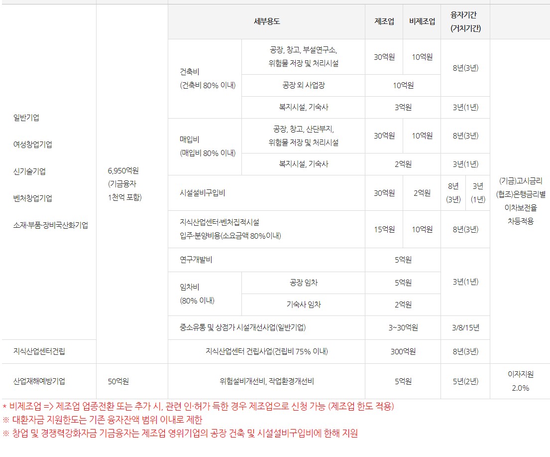 이 자금은 운전자금과 시설자금으로 구분되며, 기업의 필요에 따라 활용할 수 있습니다.