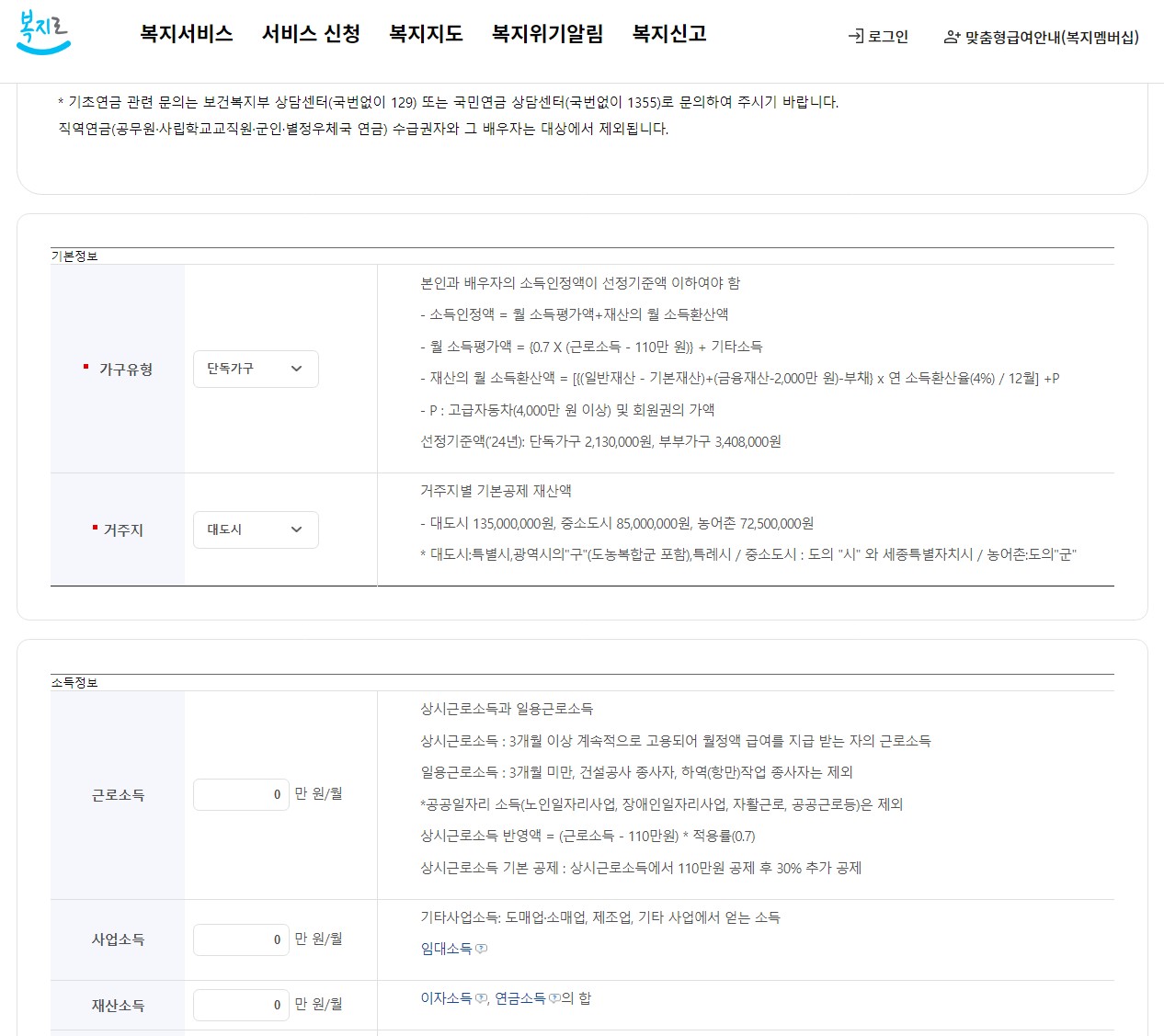 * 기본재산액을 초과하는 경우 초과 금액의 일정 비율이 소득으로 환산되어 소득인정액에 반영됩니다.